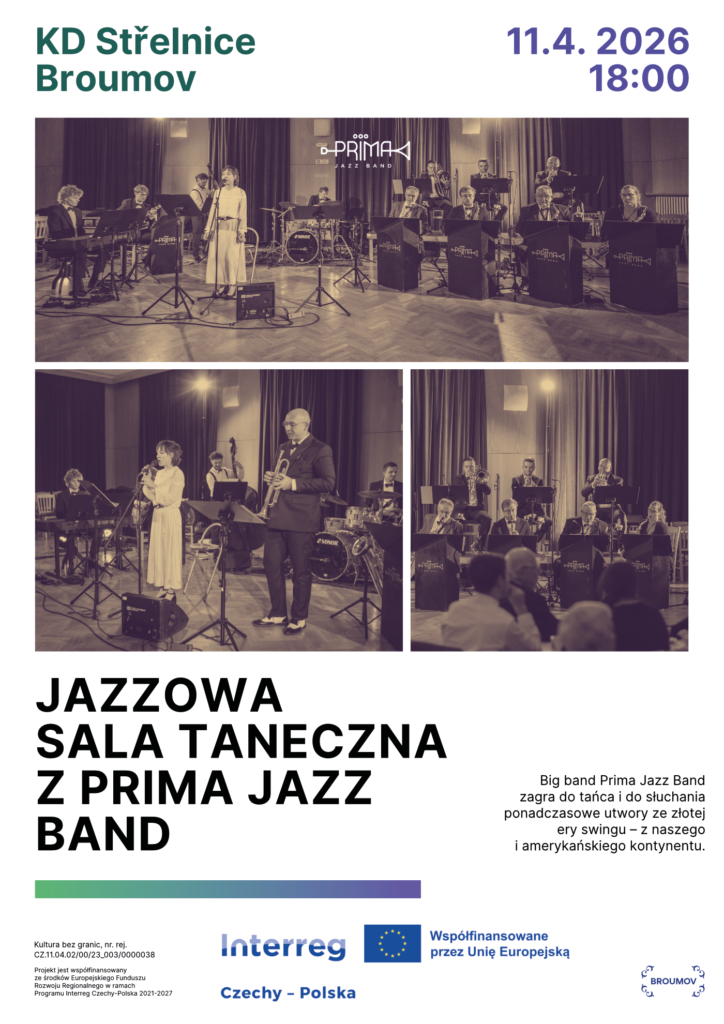 Czeski partner projektu INTERREG „Kultura bez granic”, miasto Broumov zaprasza 6 kwietnia 2024 na wydarzenie „Jazzowa Sala Taneczna”.