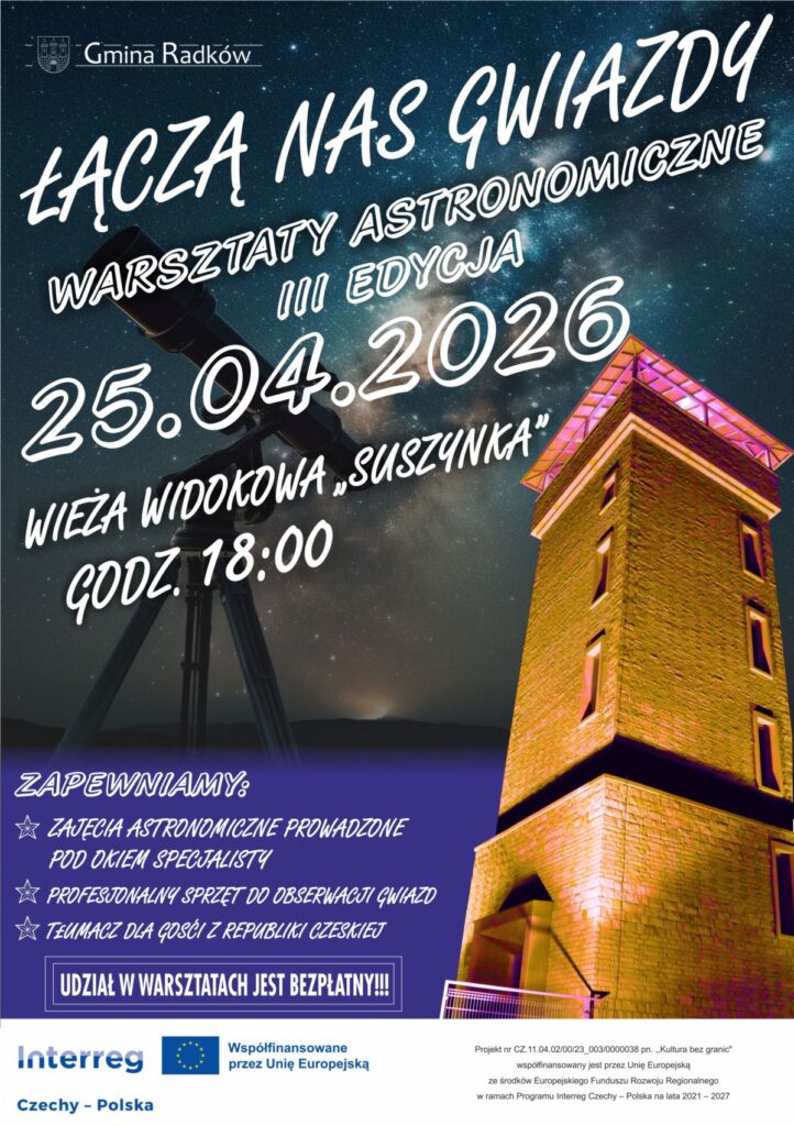 25 kwietnia 2026 nasi partnerzy z Gminy Radków zapraszają na kolejną edycję warsztatów astronomicznych.